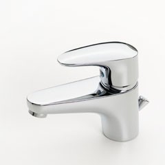 Umyvadlová stojánková baterie s ovládaným vypouštěcím ventilem. Eko-páka, flex. hadičky.